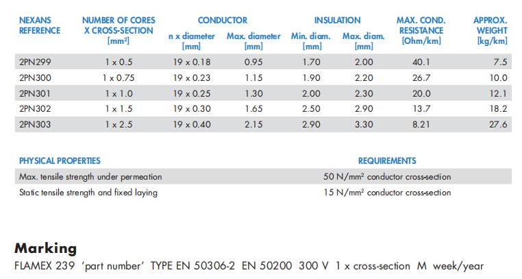 FR TYPE EN 50306-2 MSZ 300/500 V 防火单芯控制电缆