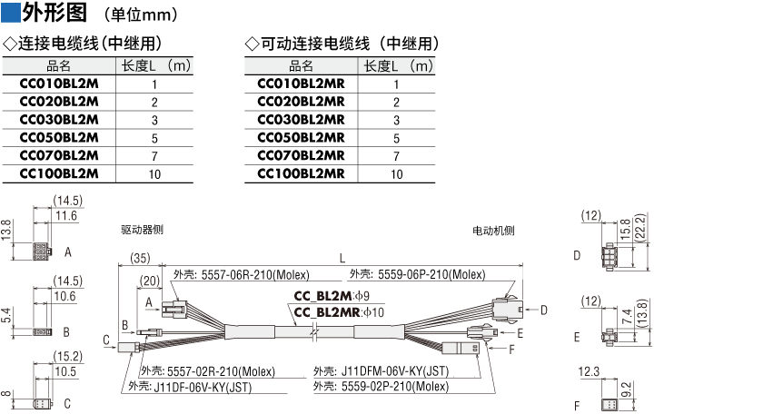 BLE2系列 带电磁制动电动机用 连接电缆线(中继用)