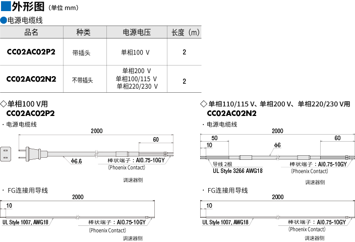 将速度控制器连接到电源的电缆线。电缆线备有附电源插头型与无插头型。