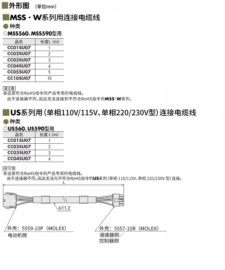 单相 110/115 V 和单相 220/230 V 类型的连接电缆线。