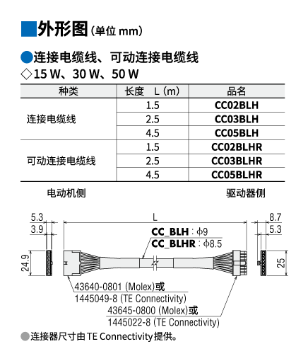 种类BLH015、BLH230、BLH450 可动连接电缆线