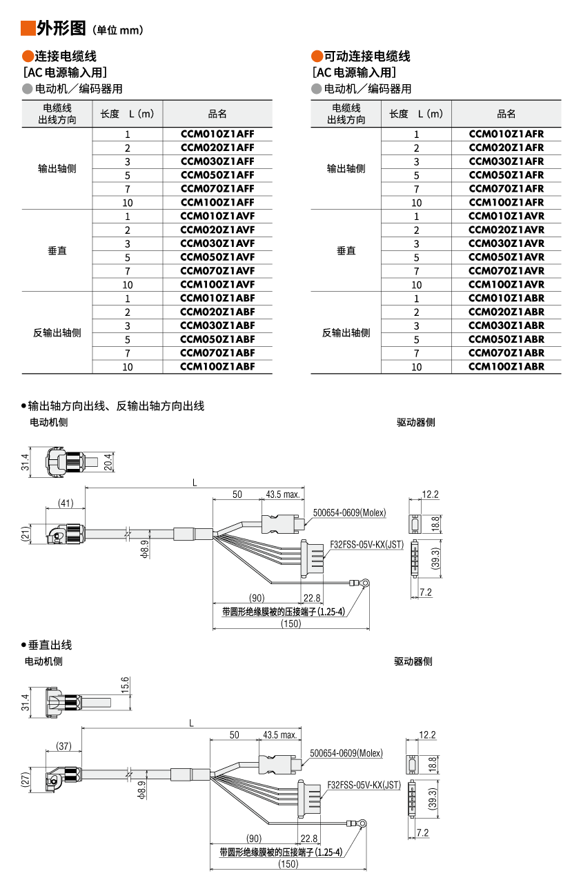 种类AZ系列 连接器型 AC电源 连接电缆线