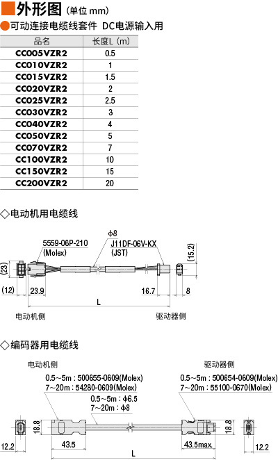 种类AZ系列DC电源 可动连接电缆线套件