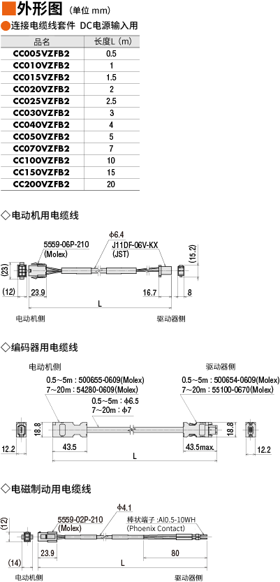 种类AZ系列DC电源 (带电磁制动) 连接电缆线套件