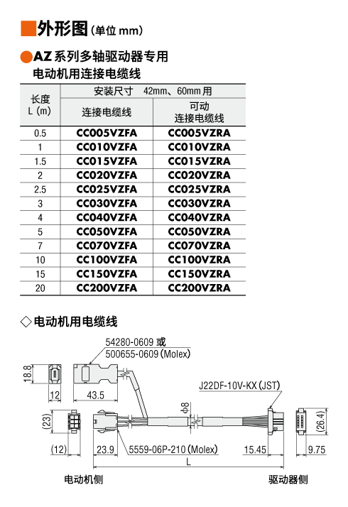 AZ系列多轴驱动器専用连接电缆线 (带电磁制动电动机除外)