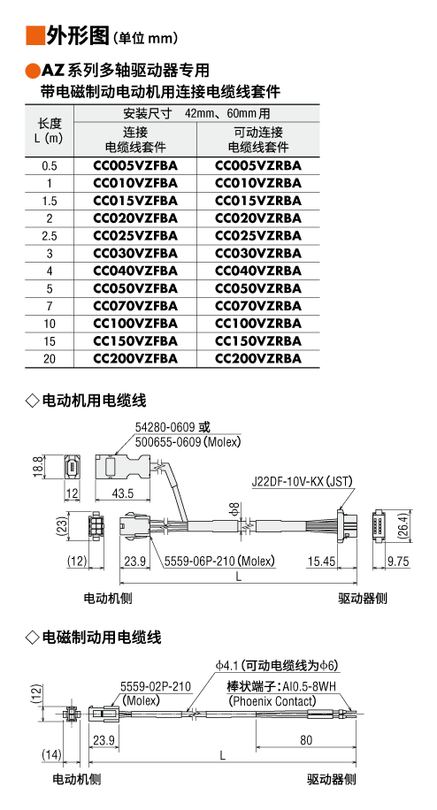 种类AZ系列多轴驱动器専用连接电缆线套件 (带电磁制动电动机用)