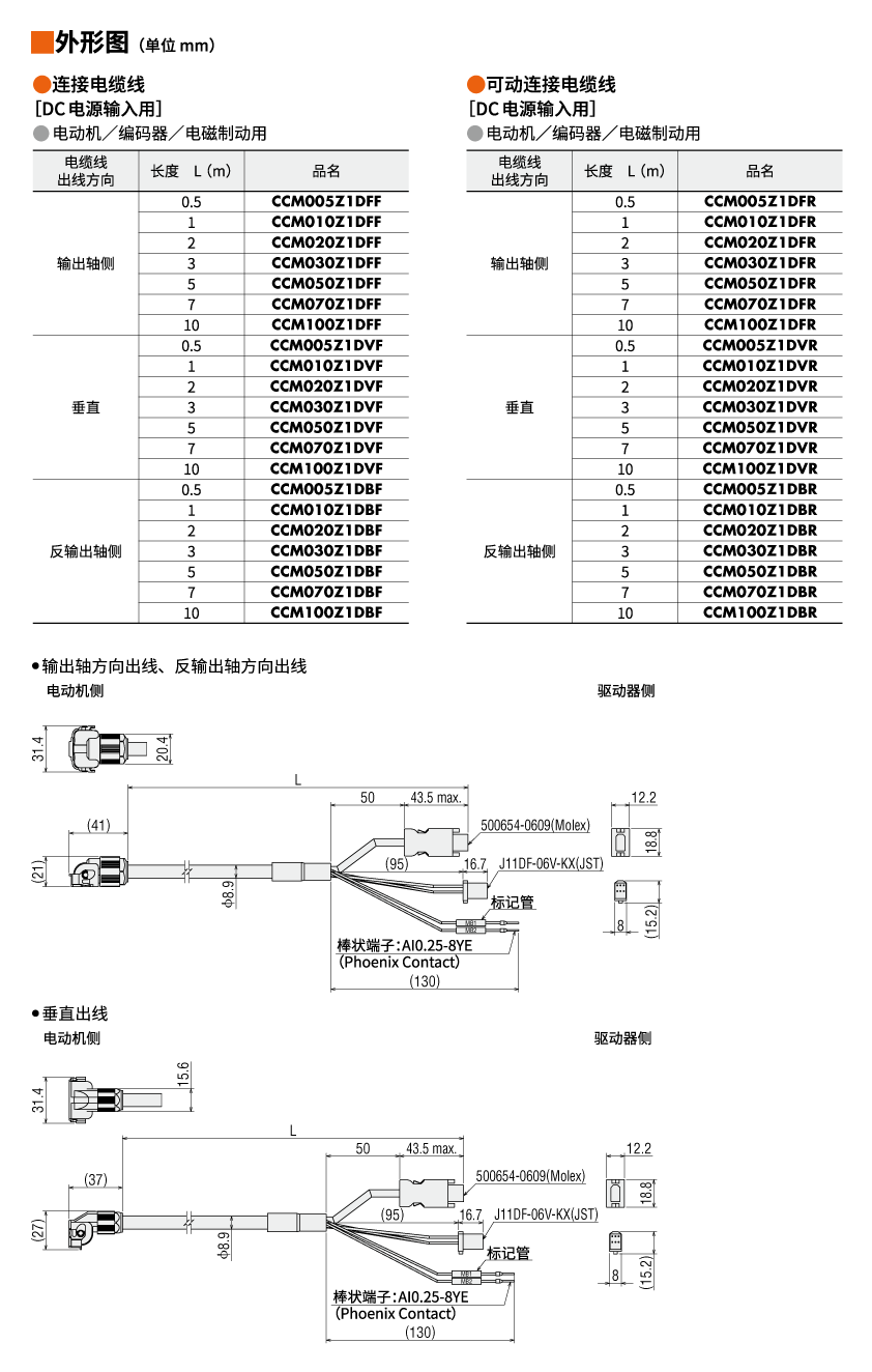| 种类 | AZ系列 连接器型 DC电源 (带电磁制动) 可动连接电缆线 |