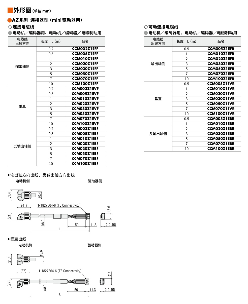 种类AZ系列 连接器型 mini驱动器用连接电缆线