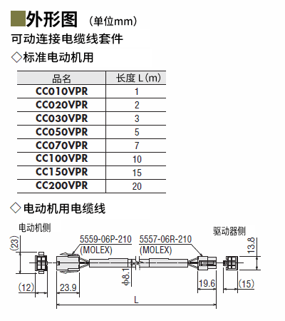 | 种类 | RKII系列(带电磁制动、带编码器除外) 可动连接(中继)电缆线套件 |