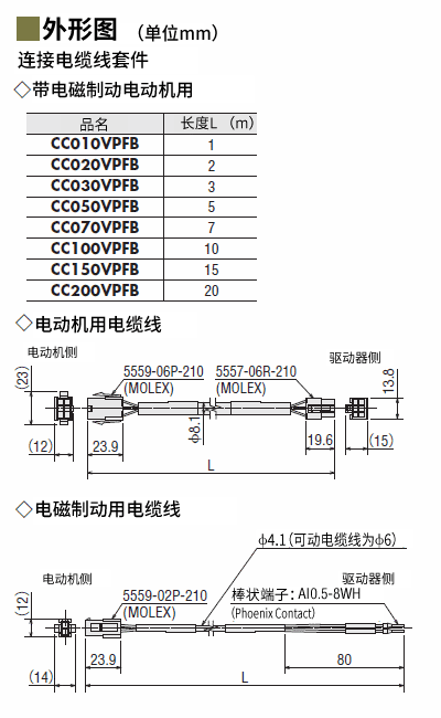 • 有关形状的详细信息,请参阅外形图。种类 AZ系列DC电源 可动连接电缆线套件连接点 电动机∼控制电路