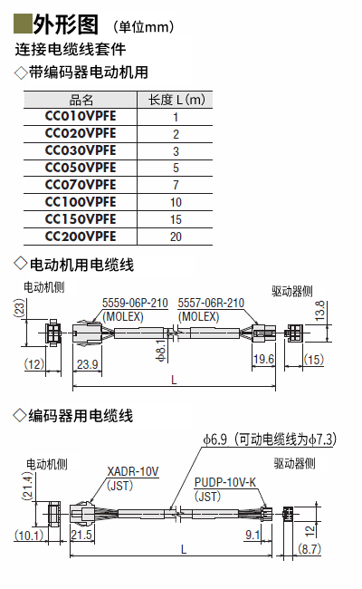 种类RKII系列(带编码器) 连接电缆线套件