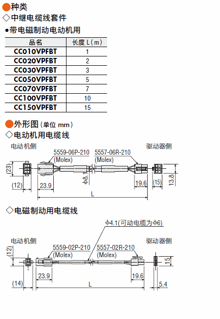 | 种类 | RKII系列(带电磁制动) 中继电缆线套件 |