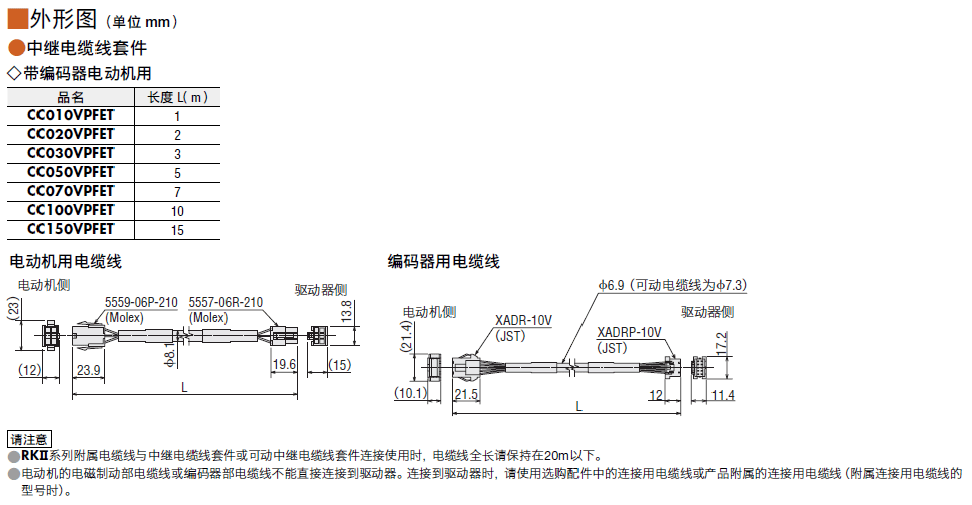 种类RKII系列(带编码器) 中继电缆线套件