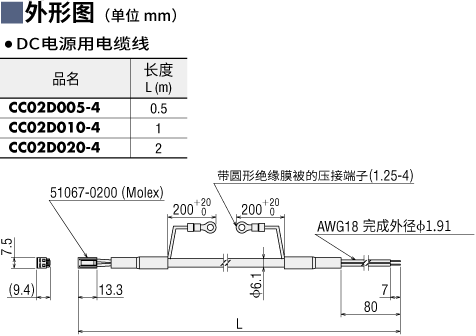 种类CVD系列电源电缆线: (电动机驱动电流: 2.8 A/相以上)