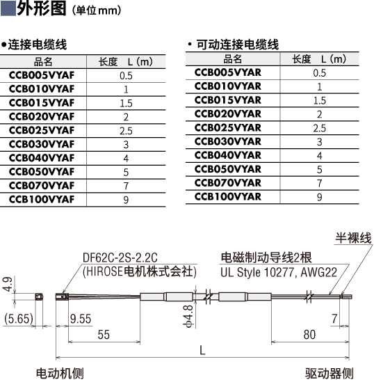 种类连接器连接方式电磁制动/DC电源用 连接电缆线