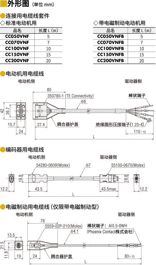 种类NX系列 (带电磁制动除外) 可动连接电缆线套件