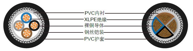 这种电缆是用于电源和控制电路, 此电缆的钢丝铠装祈祷很好的保护作用. 因此可用于建筑物内部或直埋与地下