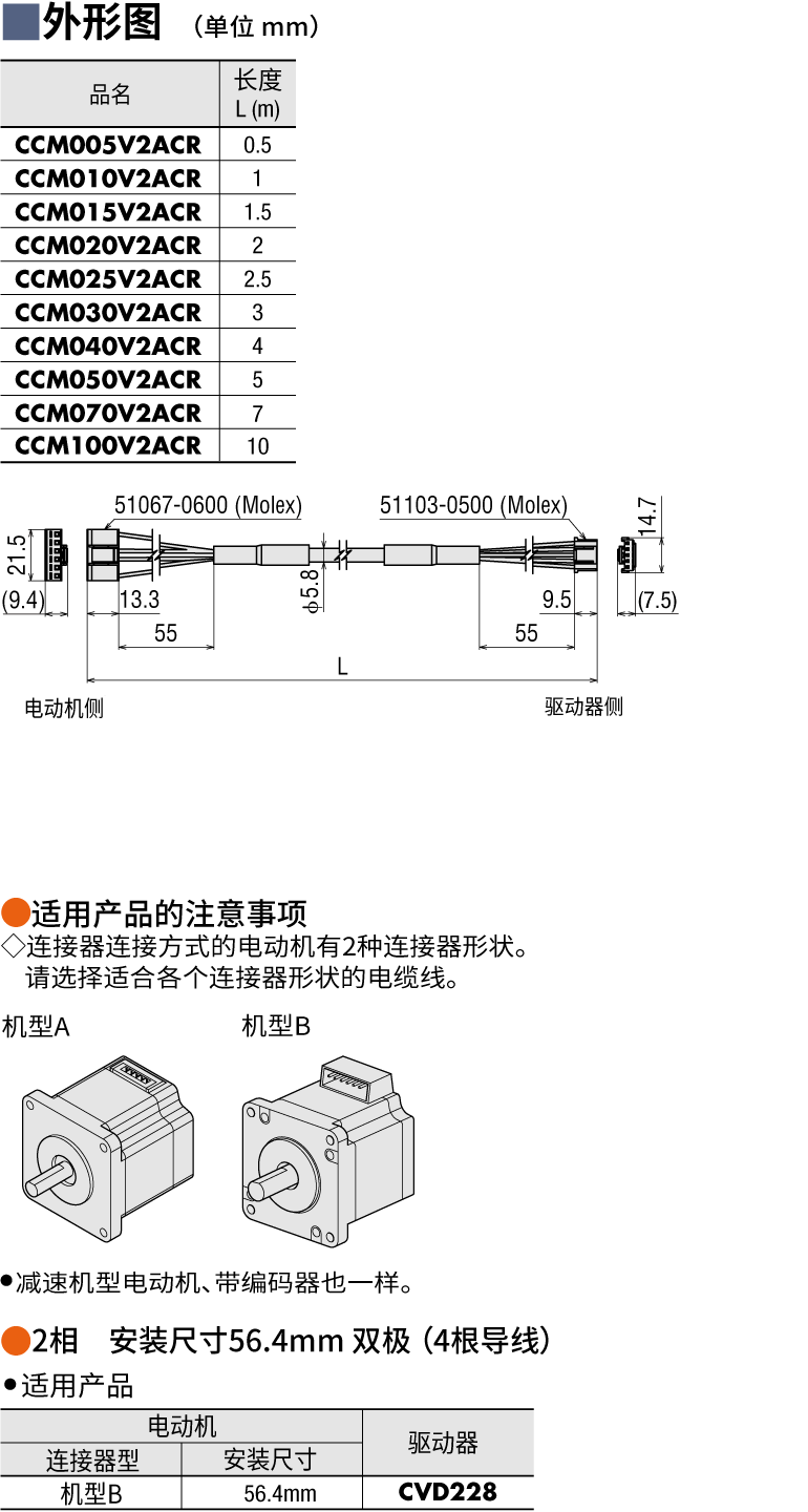 | 种类 | 2相PKP电动机/CVD驱动器用 可动连接电缆线 |